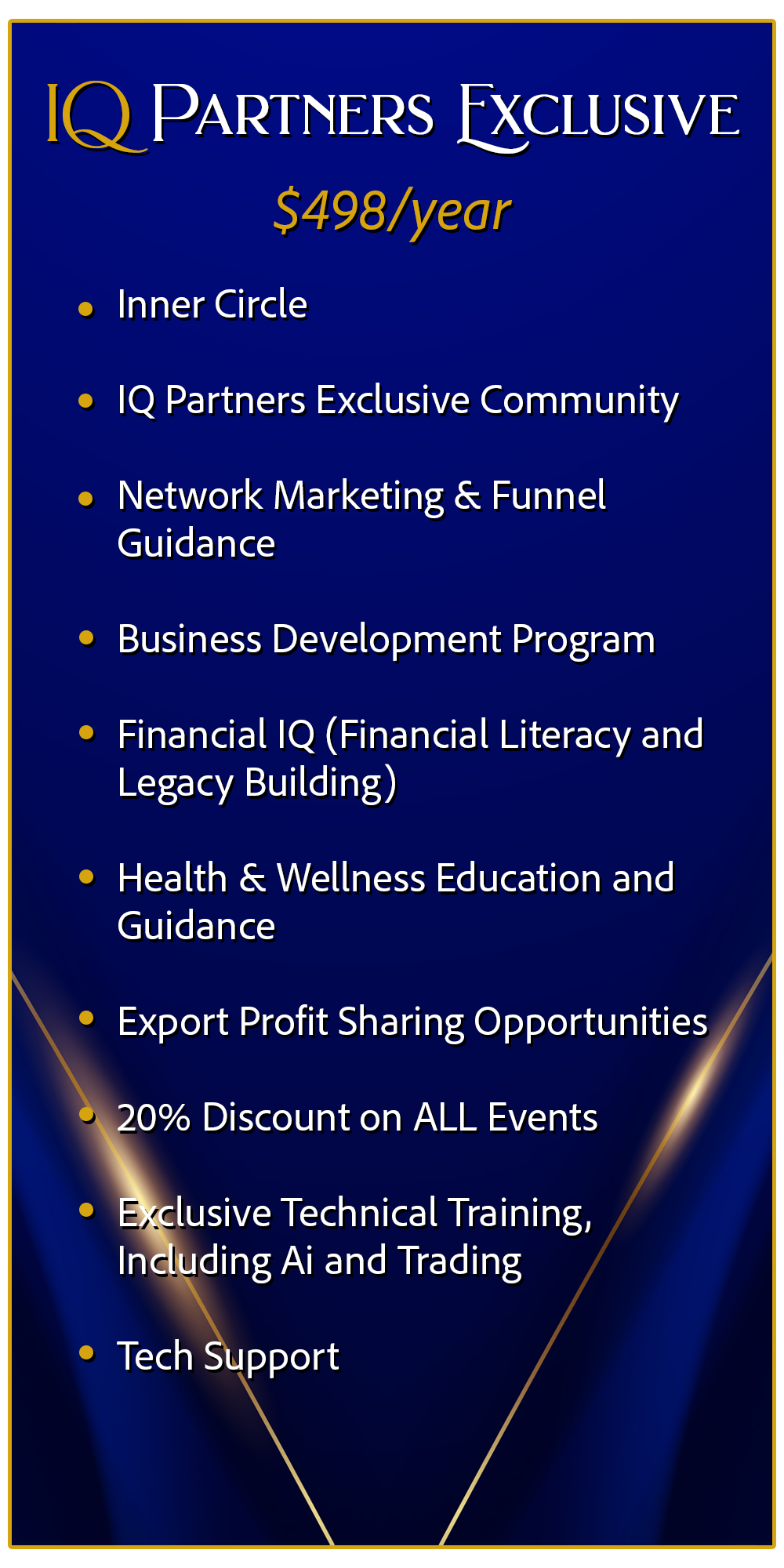 • IQ Partners Exclusive - Unlock premium mentorship, business development, and export profit sharing.